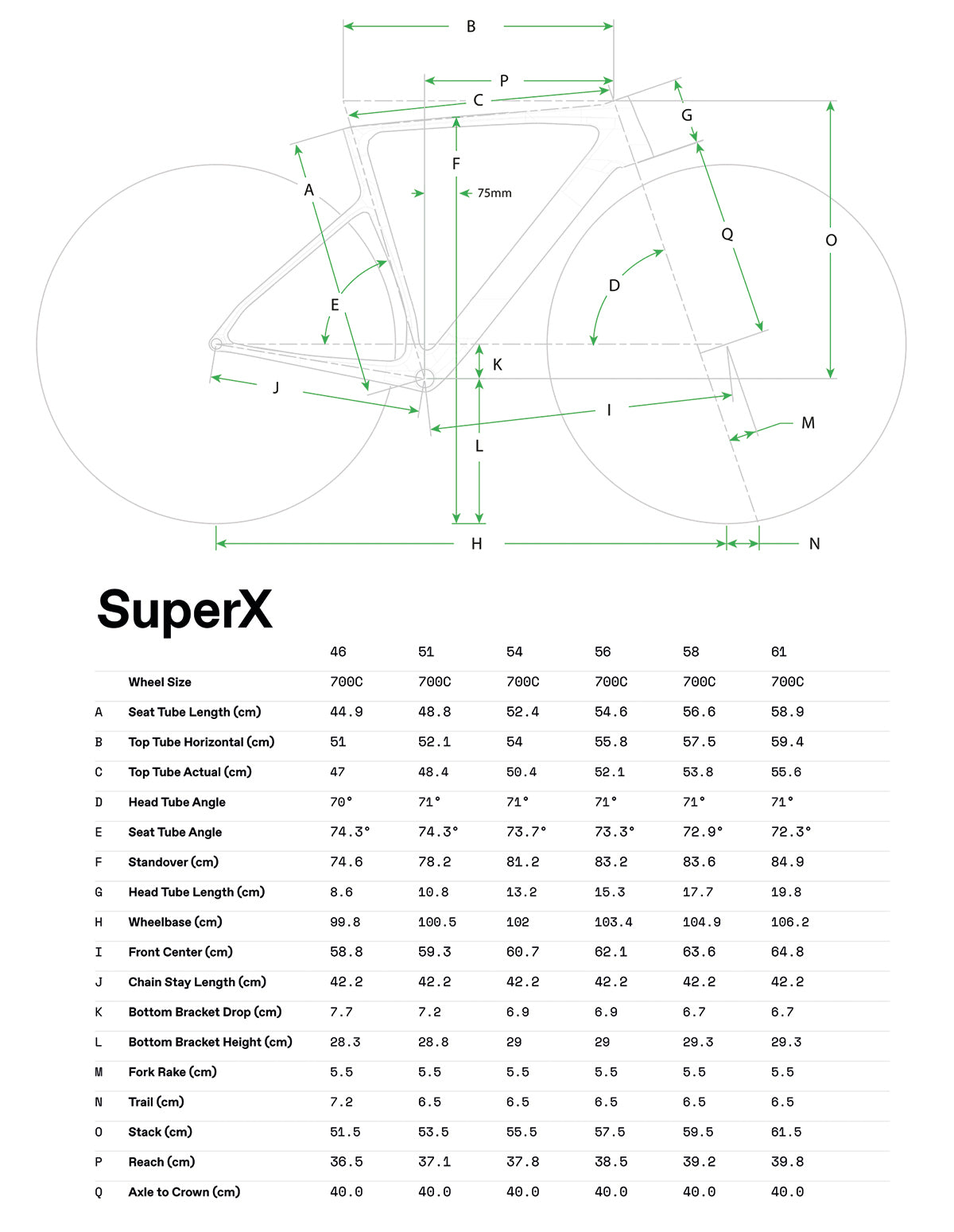 Dobór rozmiaru Cannondale SuperX - geometria w 5 rozmiarach